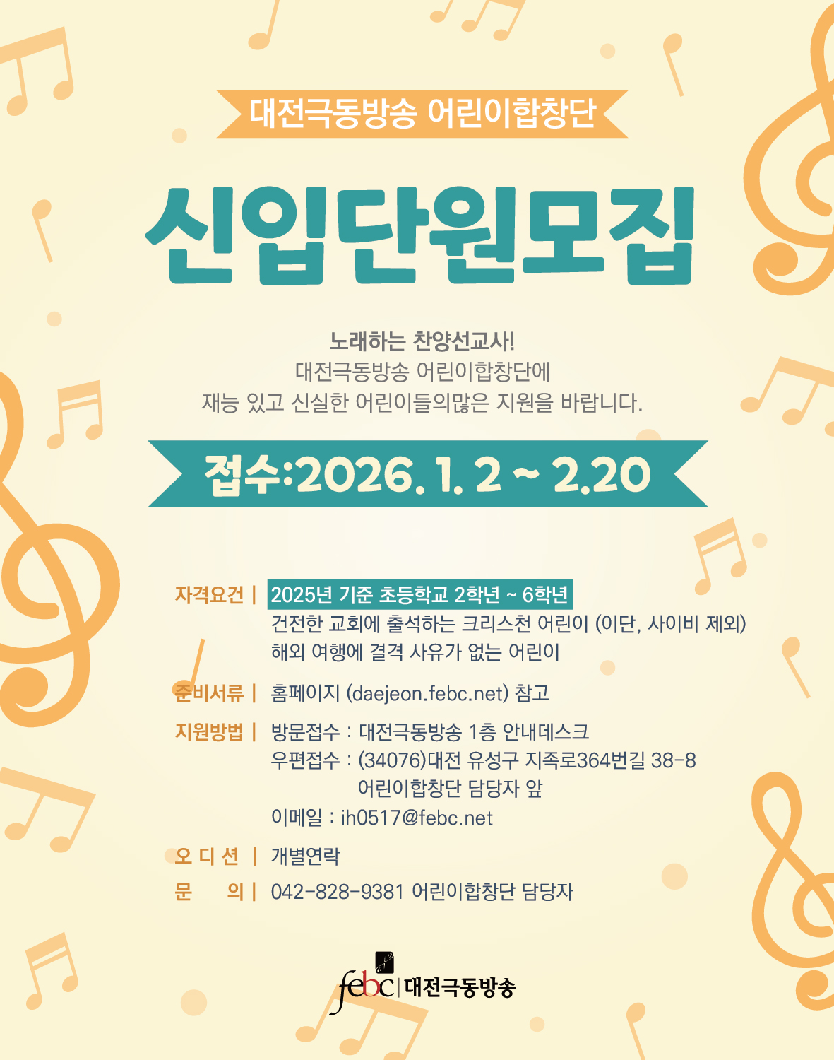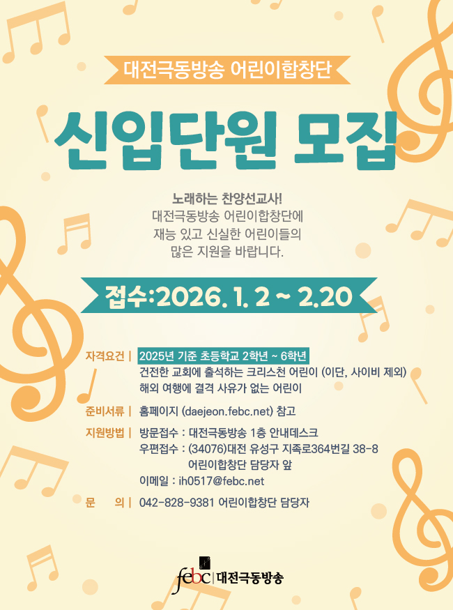 2026 광주극동방송 어린이합창단 신입단원 모집