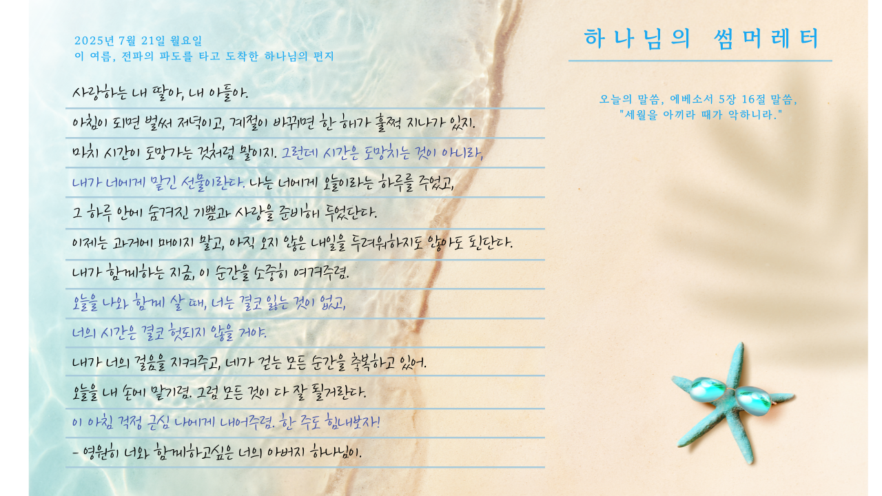 [사랑의뜰안] 7월 21일 월요일, 하나님의 썸머레터