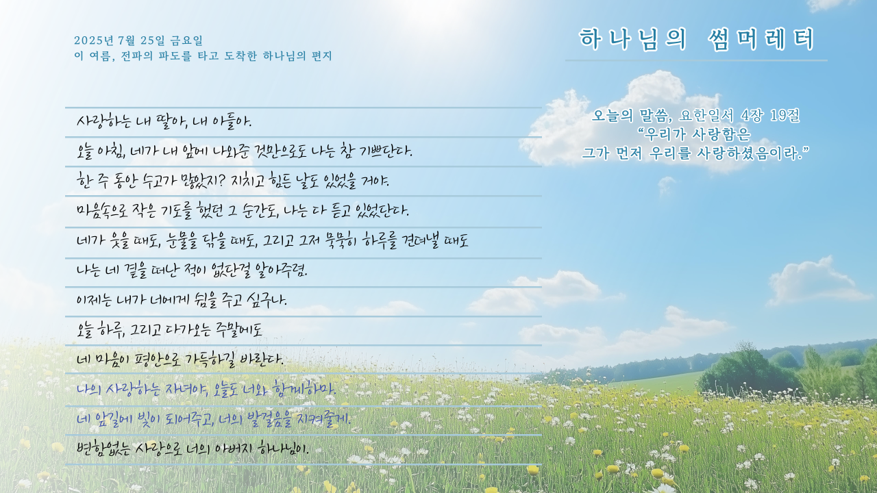 [사랑의뜰안] 7월 25일 금요일, 하나님의 썸머레터