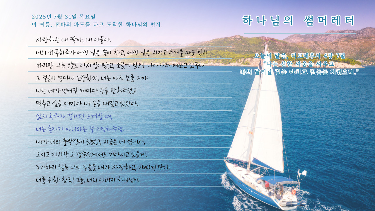 [사랑의뜰안] 7월 31일 목요일, 하나님의 썸머레터