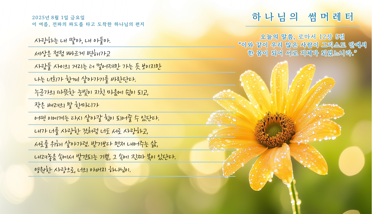 [사랑의뜰안] 8월 1일 금요일, 하나님의 썸머레터