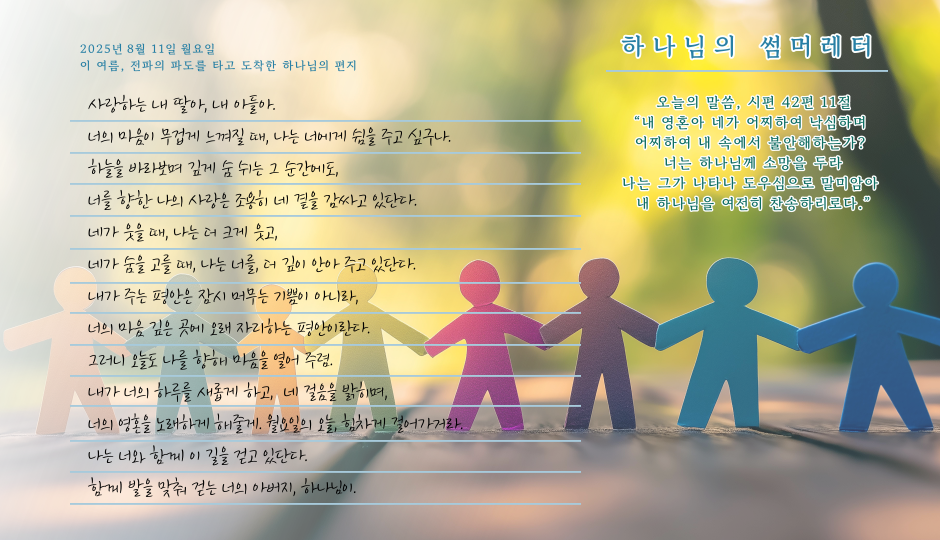 [사랑의뜰안] 8월 11일 월요일, 하나님의 썸머레터