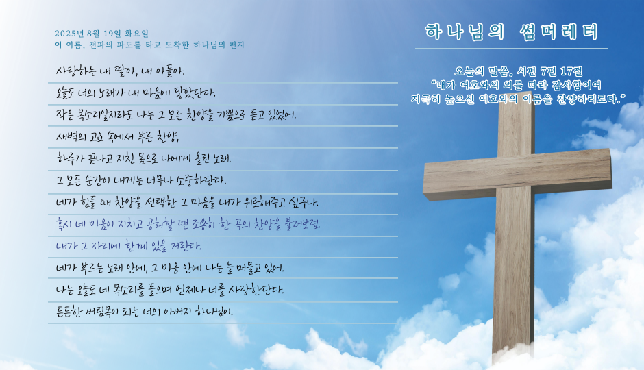 [사랑의뜰안] 8월 19일 화요일, 하나님의 썸머레터