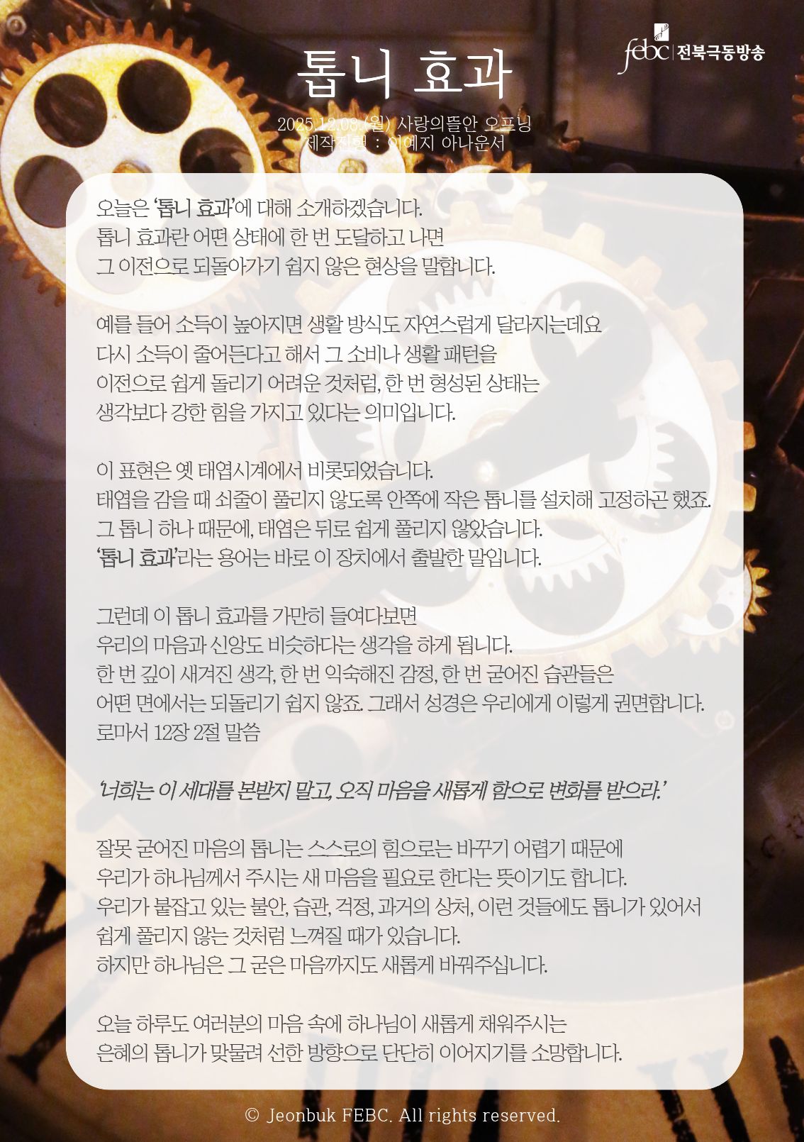 [전북] 25.12.08.(월) 사랑의뜰안 오프닝 "톱니 효과"