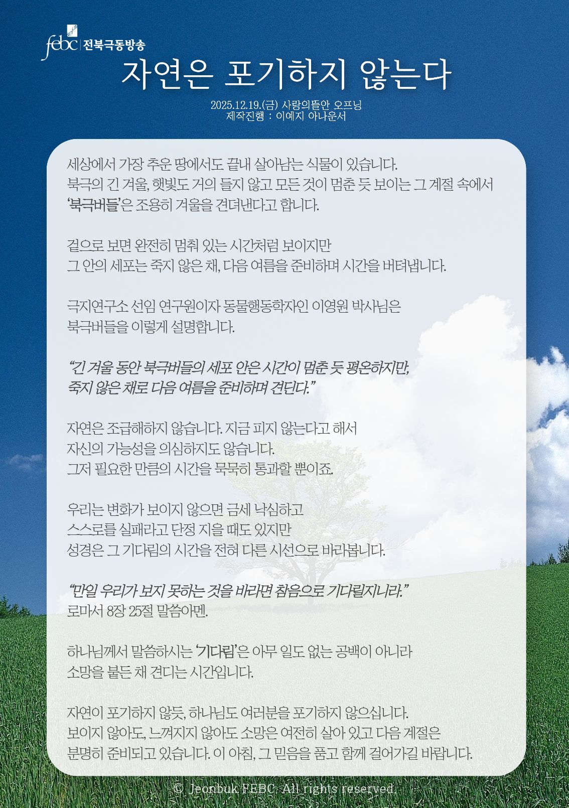 [전북] 25.12.19.(금) 사랑의뜰안 오프닝 "자연은 포기하지 않는다"