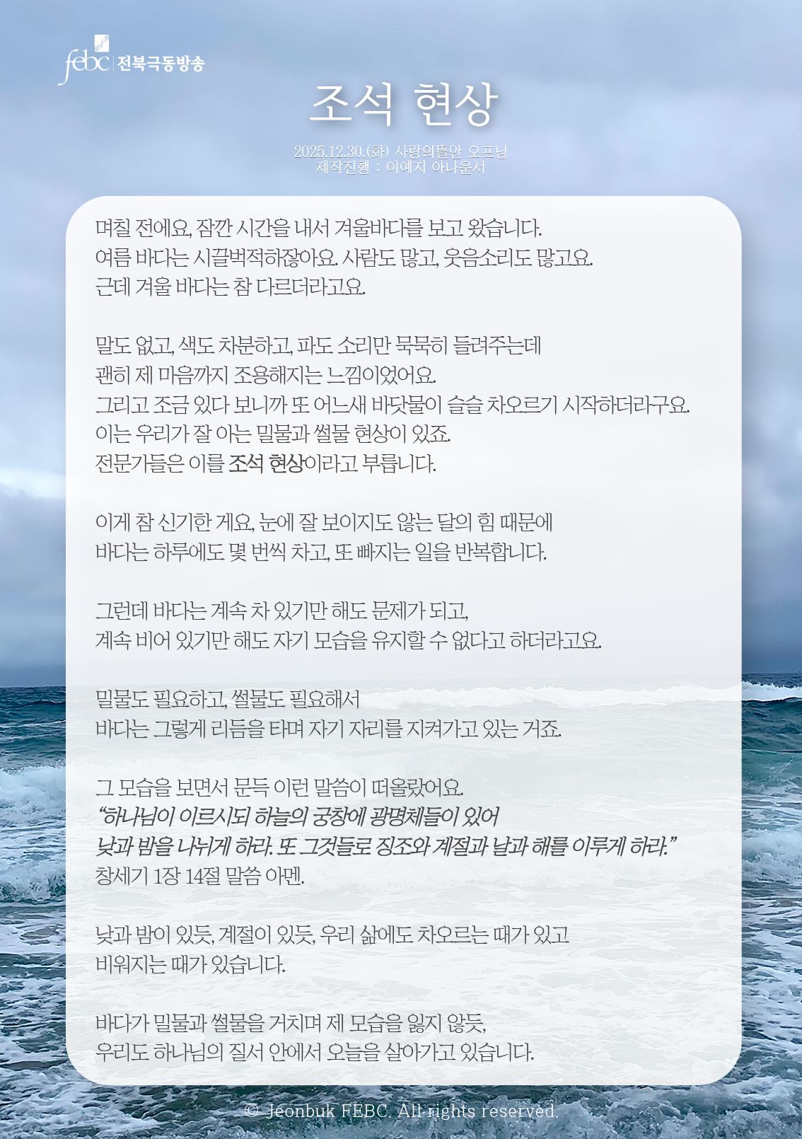 [전북] 25.12.30.(화) 사랑의뜰안 오프닝 "조석 현상"